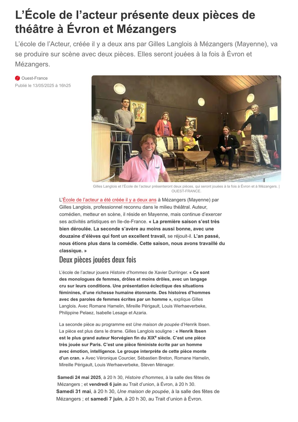 L'ECOLE DE L'ACTEUR - Cours de theâtre